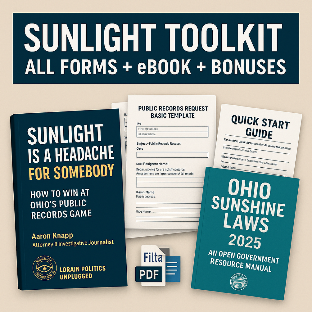 🌞 Sunlight Toolkit — Full Bundle Breakdown 📘 1. Full eBook PDF Sunlight Is a Headache For Somebody 40+ pages of real-world tactics for using the Ohio Public Records Act to investigate, expose, and hold power accountable ✔ 8 chapters ✔ Case law explained in plain English ✔ Winning strategies and scripts ✔ Templates and examples included 📝 2. 15 Fillable Public Records Forms (PDF) Instantly usable, legally formatted, and designed for citizens — no lawyer needed Includes: Basic Public Records Request Appeal and Follow-Up Templates Open Court of Claims Complaint Template Redaction Challenge Script CLEIRs Denial Counter Retention Schedule Request Form Records Tracking Log And more… 💻 3. 15 Editable Word Templates (.DOCX) All the above forms, fully editable and customizable Perfect for: Attorneys Journalists Activists Pro se litigants (Tweak, reuse, rebrand — unlimited) 🎁 4. FREE Bonus: 2025 Ohio Sunshine Laws Manual (PDF) The official, 200+ page guide from the Attorney General including: Full statutory breakdowns Common exemptions Real FOIA examples Glossary of terms Step-by-step compliance guidance 🧠 5. FREE Bonus: Sunlight Quick Start Guide (PDF) A 6-page, step-by-step crash course on how to: ✔ Write your first records request ✔ Log requests and deadlines ✔ Respond to silence or denial ✔ Get your first win in under 30 days 🔒 Lifetime Access 🔓 DRM-Free downloads 🗂️ Well-organized folder of all files 🔁 Updates included for future editions ⚖️ “Sunlight is a headache for somebody. That’s why you’re about to use it.”